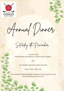 All the formation for our Annual Dinner has been posted on the main noticeboard in the foyer.